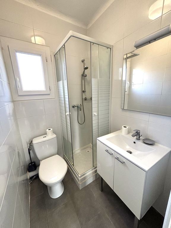 - 1er étage : T1 bis de 32 m², avec terrasse de 26 m², climatisation réversible, refait en 2024, loué 650 euros + 30 euros de charges.